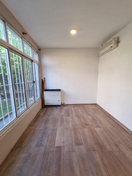 Amplio living con pisos de porcelanato simil madera nuevos. Estufa de tiro balanceado y a/a frio