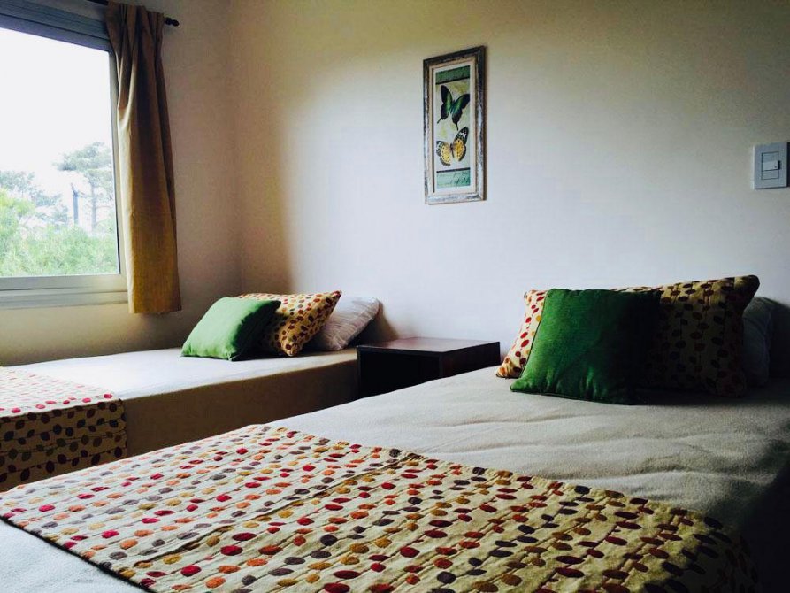 Amplio parque, solarium, pileta climatizada por caldera, juegos para chicos, cancha de football de arena, estacionamiento, ropa blanca, toallas, reposeras y sombrillas para la playa.