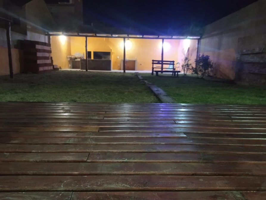 Patio trasero, cerrado con pileta quincho techado y parrilla.